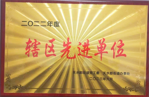 6月29日,在天水郡黨工委、天水郡街道辦事處召開的2022年度表彰會上,我公司被評為2022年度“轄區(qū)先進單位”。