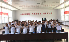 圖為總經(jīng)理侯重民同志帶領(lǐng)全體黨員重溫入黨誓詞
