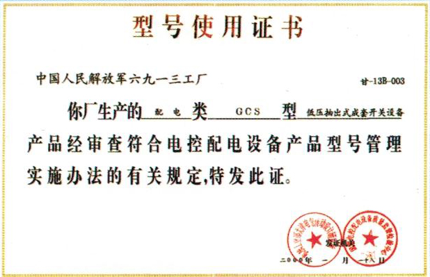型號使用證書